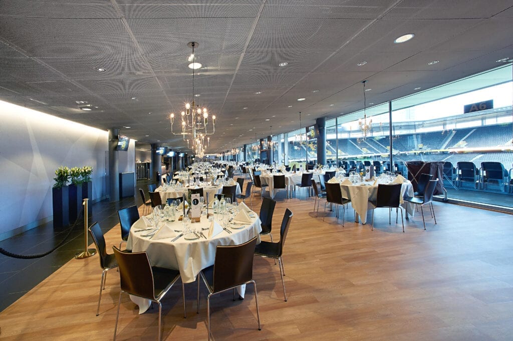 - Einzigartige Stadionatmosphäre für Anlässe bis 700 (Theaterbestuhlung) oder Bankette bis 1‘150 Personen